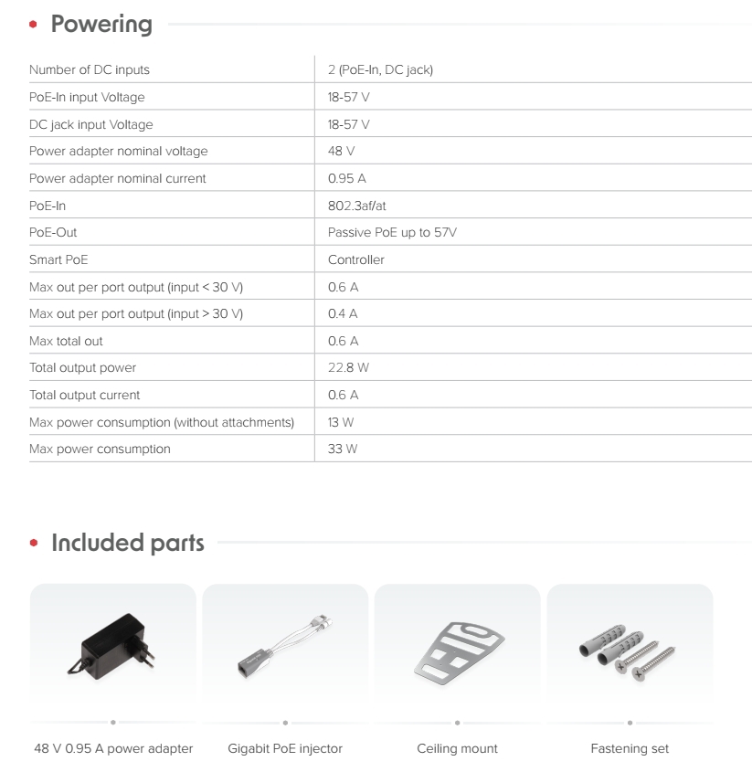 Number of DC inputs: 2 (PoE-In, DC jack)