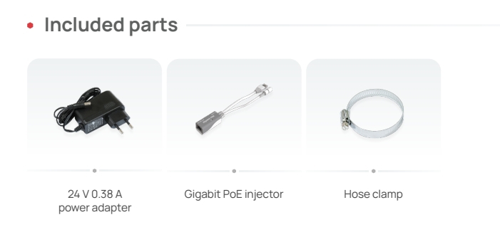 Součástí dodávky je napájecí zdroj 24V a PoE injektor.