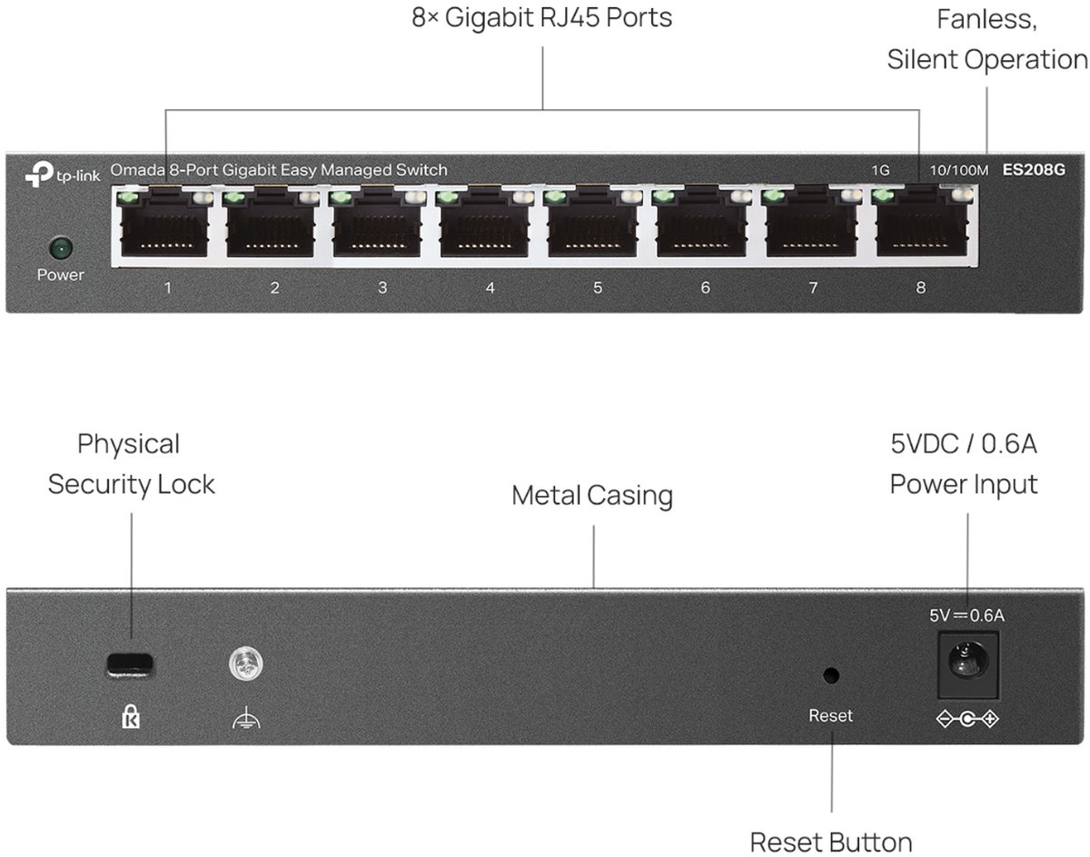 TP-LINK • ES208G • Omada Gigabitový Managed Switch - 8 port