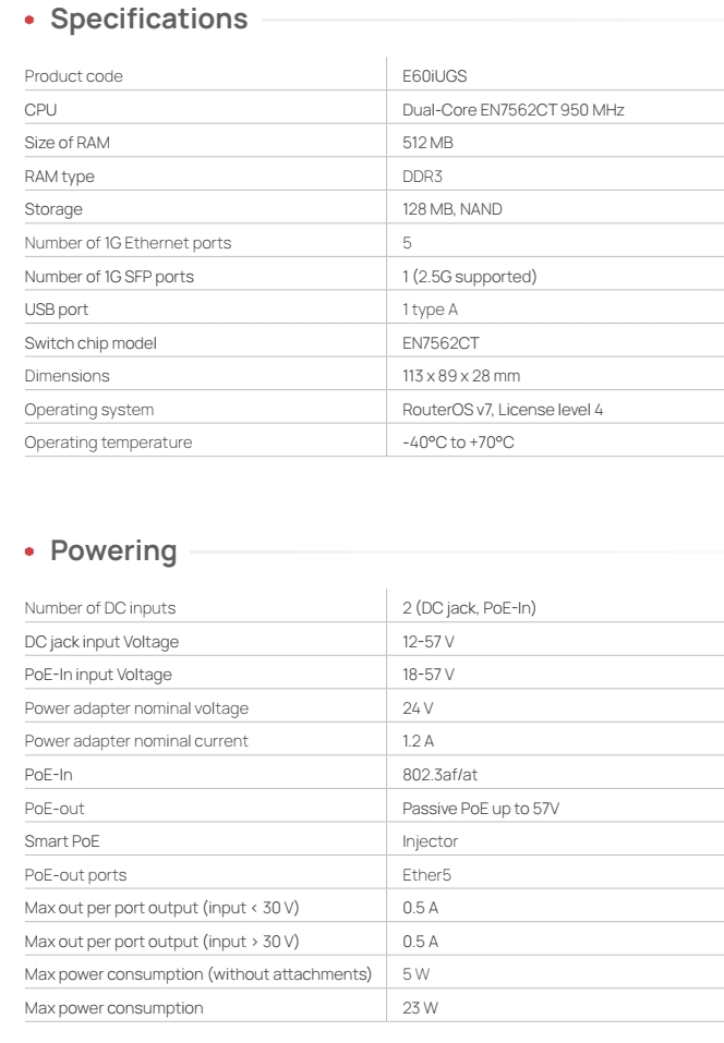 PoE output (pasivní PoE) na Ethernet portu #5.