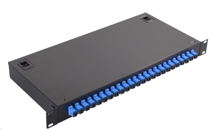 Optický rozvaděč určený pro instalaci do standardních 19" rackových stojanů. Slouží k organizaci a správě optických kabelů v datových centrech, telekomunikačních uzlech nebo jiných sítích využívajících rackovou infrastrukturu. Tento typ rozvaděče je klíčový pro efektivní správu a údržbu optické kabeláže v rackové instalaci, poskytuje přehledné a bezpečné propojení optických vláken.