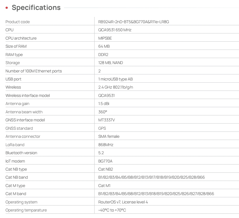 MIKROTIK • RB924iR-2nD-BT5&BG770A&R11e-LR8G • IoT Gateway KNOT LR8G kit