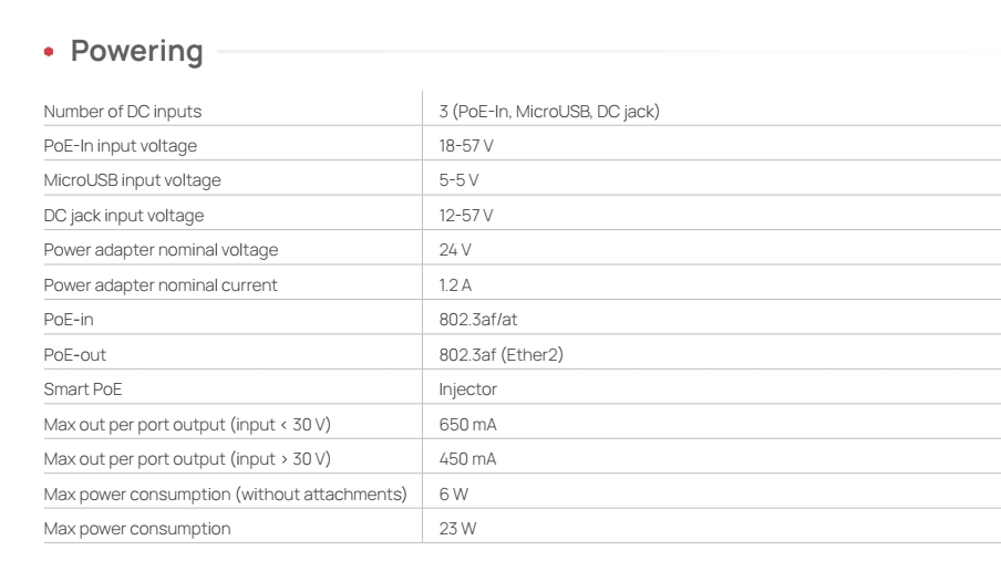 Number of DC inputs: 3 (PoE-In, MicroUSB, DC jack)
