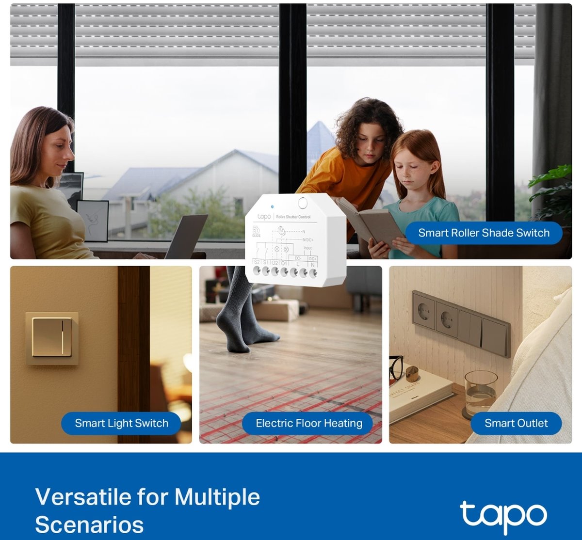 Tapo S112 má dva režimy, které umožňují integraci různých zařízení. V roletovém režimu je ideální pro automatizacké stahování a vytahování rolet. V režimu přepínače můžete ovládat chytrá světla, zásuvky a elektrické podlahové vytápění, aniž byste museli měnit stávající zařízení.