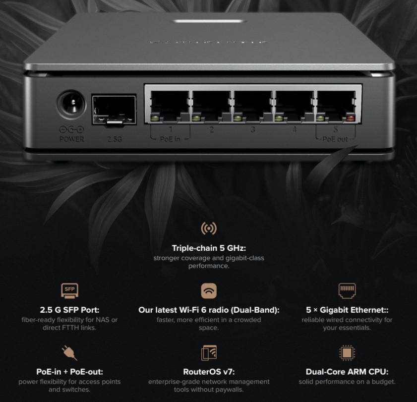 Na rozdíl od jednoúčelových „herních“ přístupových bodů vám hAP ax S nabízí plný výkon, flexibilitu a funkční budoucnost v stále zdokonalovaném RouterOS v7.