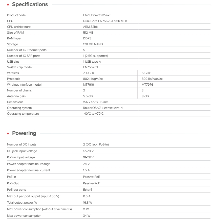 MIKROTIK • E62iUGS-2axD5axT • 2,4/5GHz WiFi 6 router hAP ax S