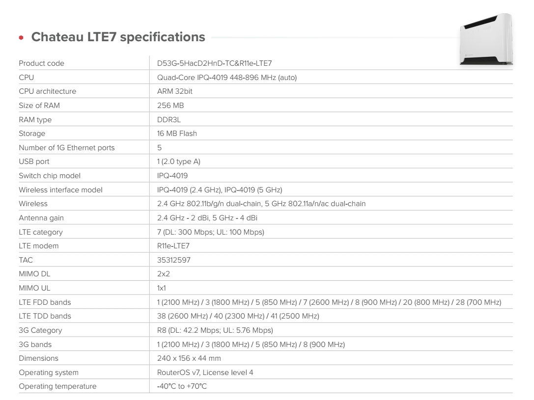 MIKROTIK • D53G-5HacD2HnD-TC&R11e-LTE7 • LTE domácí Access Point Chateau LTE7