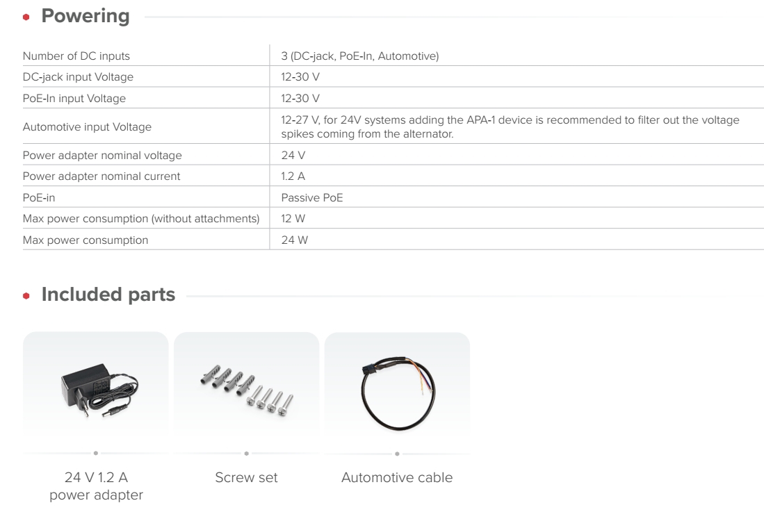 Number of DC inputs: 3 (DC-jack, PoE-In, Automotive)