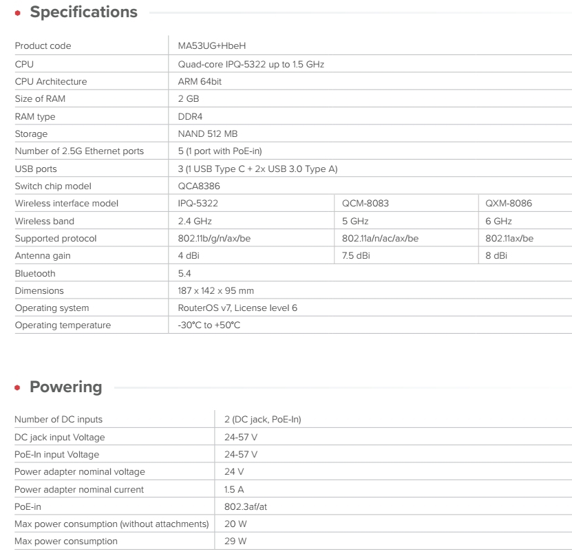 CPU: Quad-core IPQ-5322 up to 1.5 GHz