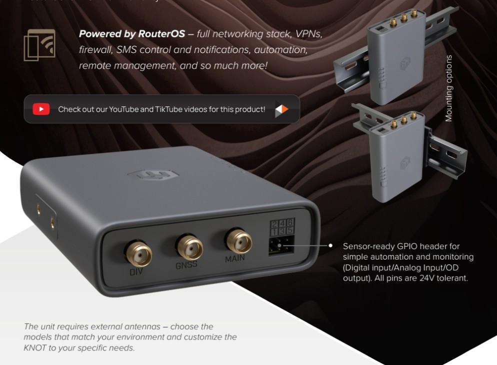 Používejte jej jako primární bránu, záložní spojení nebo uzel pro sběr dat IoT – vše je poháněno RouterOS pro maximální flexibilitu.