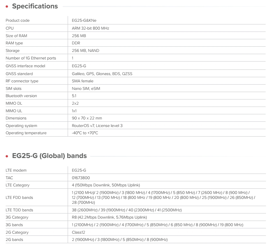 MIKROTIK • EG25-G&KNe • IoT Gateway KNOT Embedded LTE4 Global